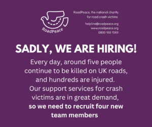 For a business, an expanding workforce and an increased demand for services is a sign of success. But for a charity like RoadPeace, the national charity for road crash victims, the recruitment of additional staff members simply highlights the staggering number of people that continue to be killed and injured in collisions on the UK’s roads, and the immense grief and suffering that so many victims are facing.
