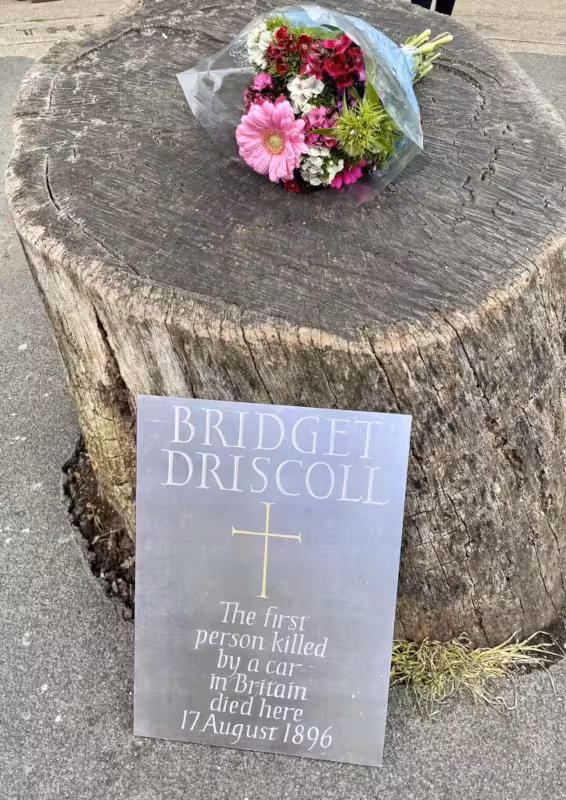 Flowers laid earlier this year in Crystal Palace in memory of Bridget Driscoll, the first UK road crash victim in 1896